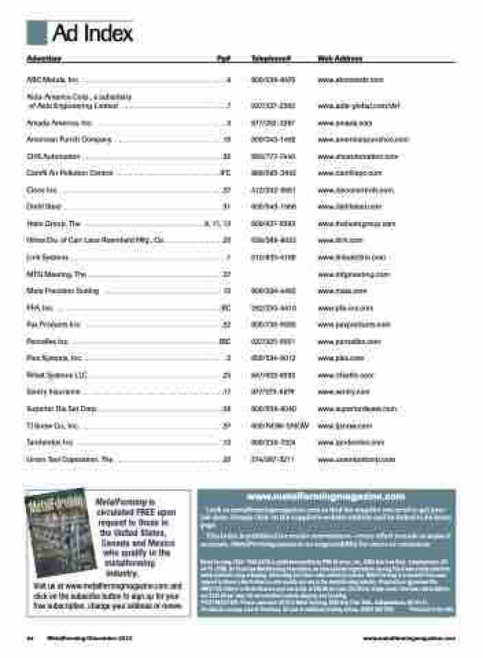Visit us at www.metalformingmagazine.com and click on the subscribe button to sign up for your free subscription, change your address or renew.