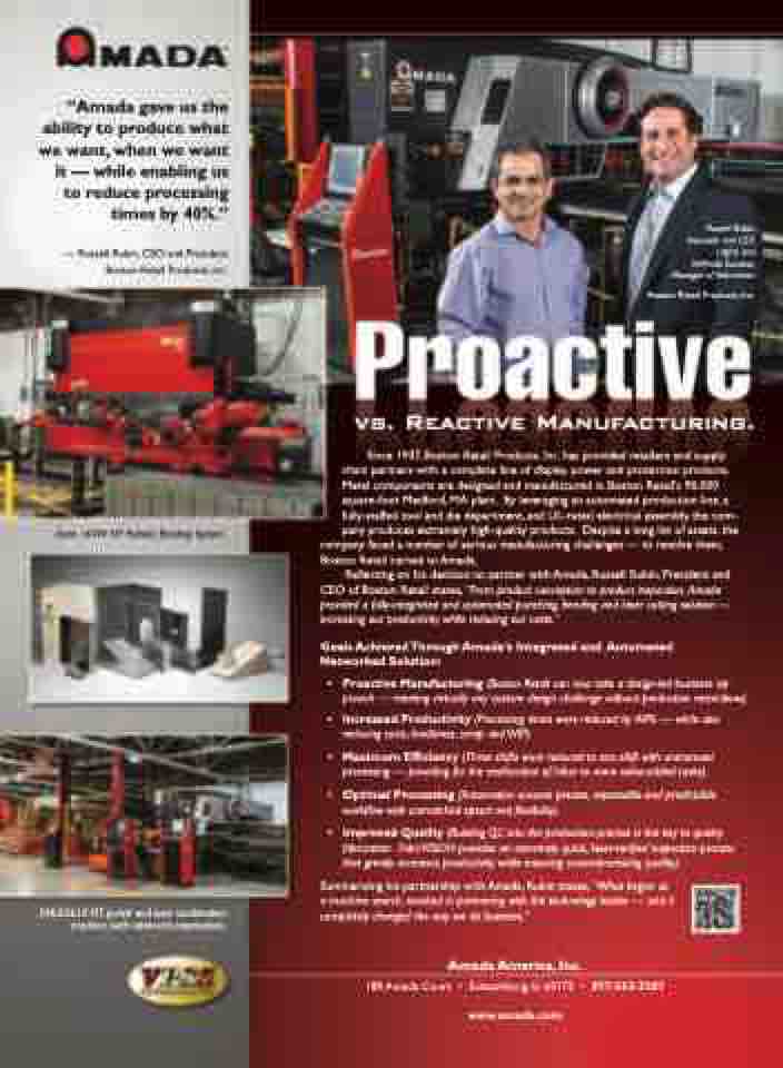 Reflecting on his decision to partner with Amada, Russell Rubin, President and CEO of Boston Retail states, “From product conception to product inspection, Amada provided a fully-integrated and automated punching, bending and laser cutting solution — increasing our productivity while reducing our costs.”