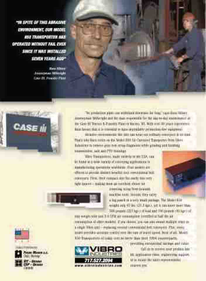 “No production plant can withstand downtime for long,” says Russ Milner, Journeyman Millwright and the man responsible for the day-to-day maintenance at the Case IH Tractor & Foundry Plant in Racine, WI. With over 30 years experience, Russ knows that it is essential to have dependable production-line equipment.