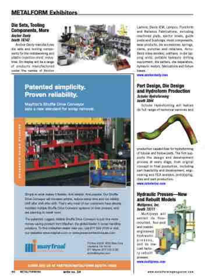 The patented, rugged, reliable Shuffle Drive Conveyor is just one more money saving product from Mayfran: the global leader in scrap handling solutions. To find a Mayfran dealer near you, call 877 629 3726 or visit our websites www.mayfran.com or www.pressroomtechniques.com