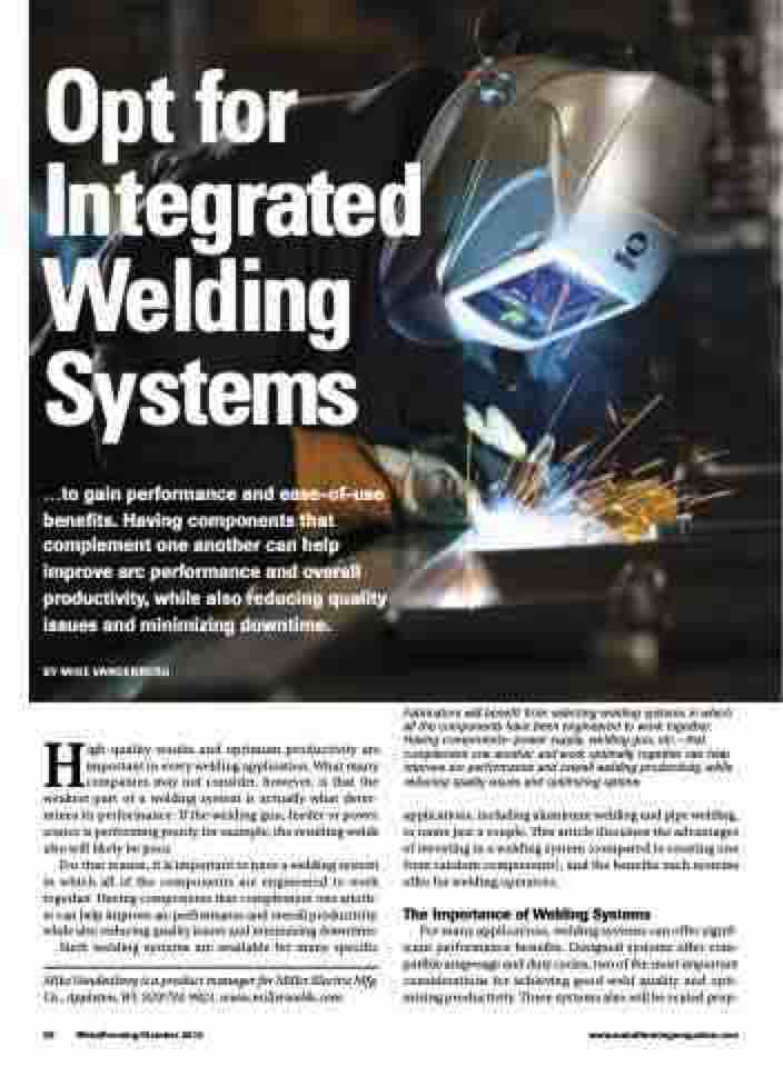 applications, including aluminum welding and pipe welding, to name just a couple. This article discusses the advantages of investing in a welding system (compared to creating one from random components), and the benefits such systems offer for welding operators.