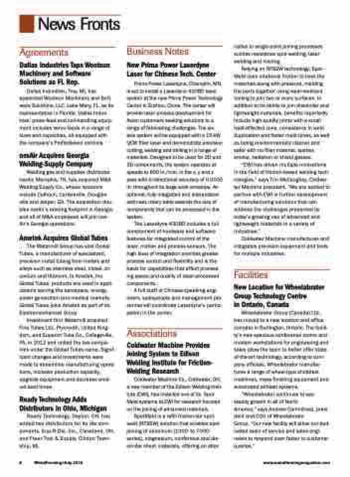 “EWI has driven multiple innovations in the field of friction-based welding tech- nologies,” says Tim McCaughey, Coldwa- ter Machine president. “We are excited to partner with EWI in further development of manufacturing solutions that can address the challenges presented by today’s growing use of advanced and lightweight materials in a variety of industries.”