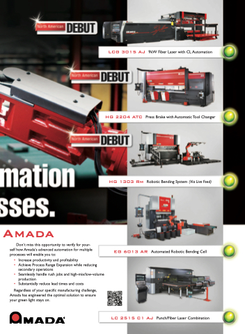 Don’t miss this opportunity to verify for your- self how Amada’s advanced automation for multiple processes will enable you to: