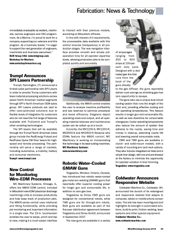 Currently, the MV1200-S, MV1200-R, MV2400-S and MV2400-R Advance wire EDMs feature the M800 control. MC Machinery is working on incorporating this technology in its laser-cutting machines. MC Machinery Systems: www.mcmachinery.com