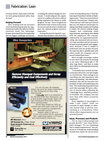 Every employee is encouraged to make 1-min. videos. Some are accounts of rapid changes to elimi- nate wasted steps or prevent over- reaching at a workstation. Other videos reflect improvements over an extended period.