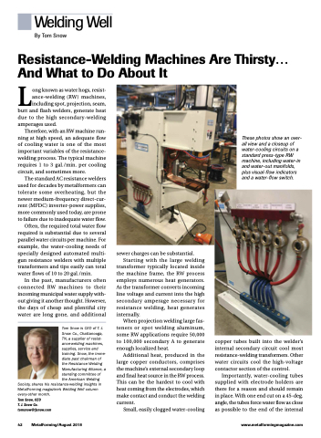 The standard AC resistance welders used for decades by metalformers can tolerate some overheating, but the newer medium-frequency direct-cur- rent (MFDC) inverter-power supplies, more commonly used today, are prone to failure due to inadequate water flow.