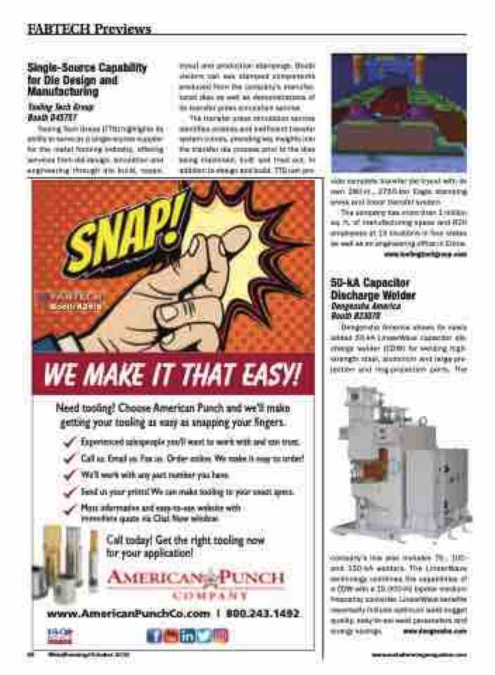 Tooling Tech Group (TTG) highlights its ability to serve as a single-source supplier for the metal forming industry, offering services from die design, simulation and engineering through die build, repair,